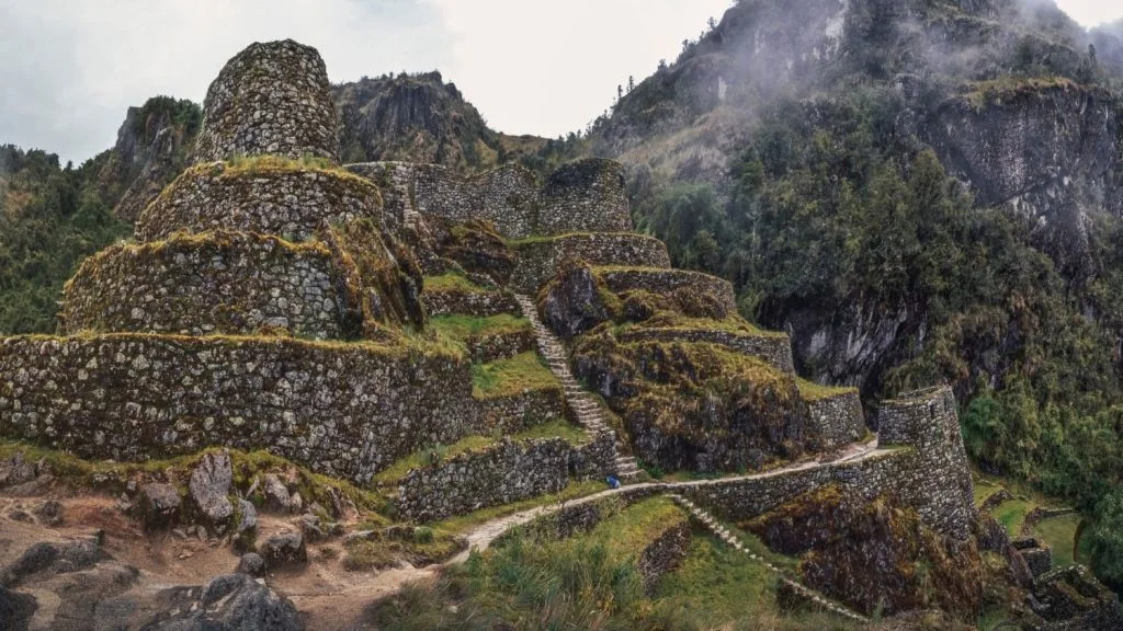 Puyupatamarca is located along the classic Inca Trail to Machu Picchu, typically visited on the third day of the 4-day trek. Reaching the site involves a challenging but rewarding hike through high-altitude terrain. From the previous campsite at Chaquicocha, the trek to Puyupatamarca covers approximately 5 to 7 kilometers (3 to 4.5 miles), depending on the exact route taken. The trail ascends steadily to around 3,600 meters (11,800 feet), offering incredible views of cloud forests, mountains, and deep valleys.
