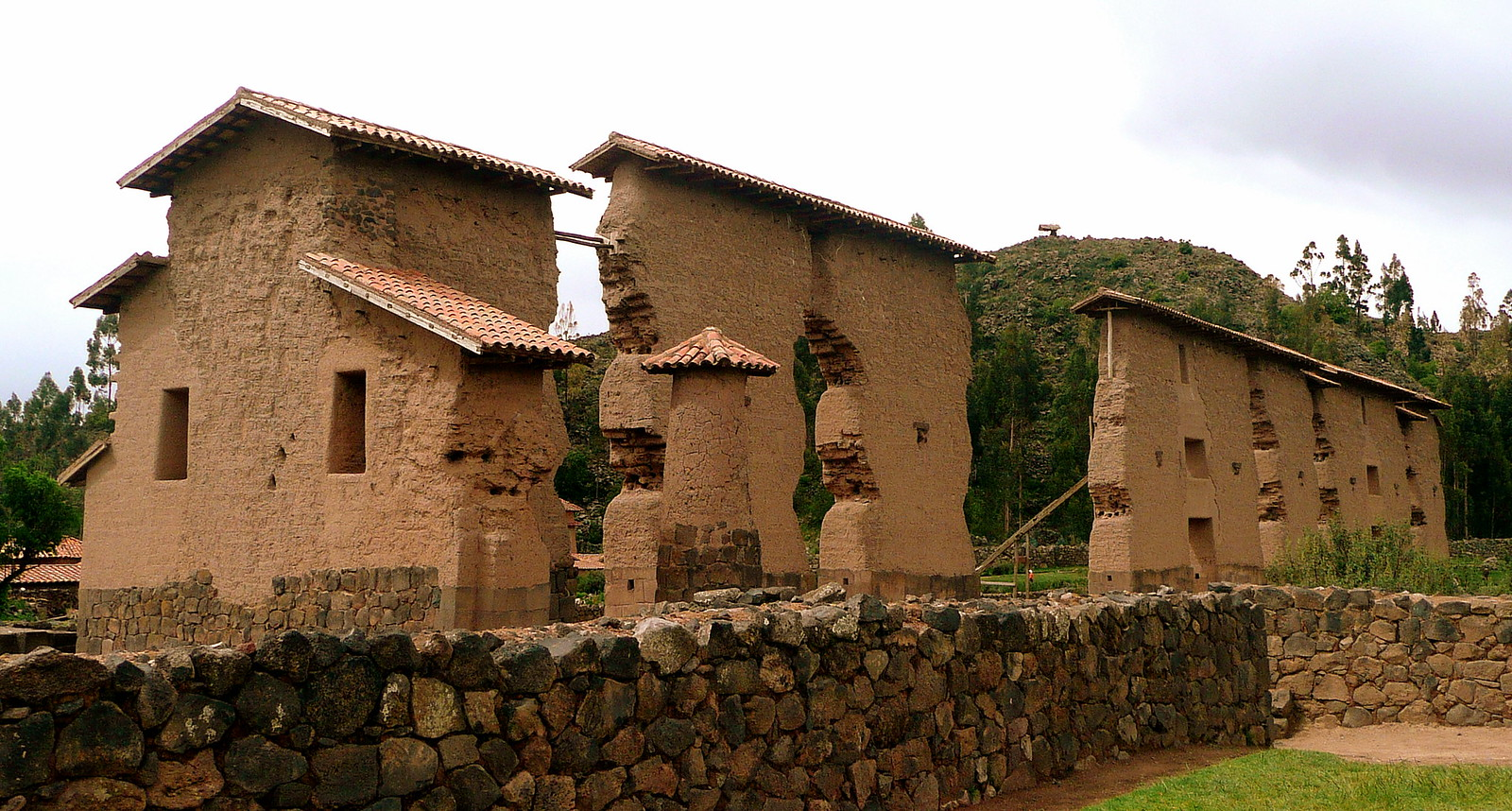 Raqchi, also known as the Temple of Wiracocha, is an important Inca archaeological site located in the Cusco region of Peru. The site was a major religious and administrative center in the Inca Empire, dedicated to Wiracocha, one of the most important deities in the Inca pantheon. The centerpiece of the complex is the massive temple with a central adobe wall that once stood nearly 15 meters high, flanked by rows of columns—an unusual architectural feature in Inca construction. The temple’s scale and design reflect the significance of the site as a place of pilgrimage and worship, with facilities for ceremonial feasts, storage, and lodging for travelers and priests.